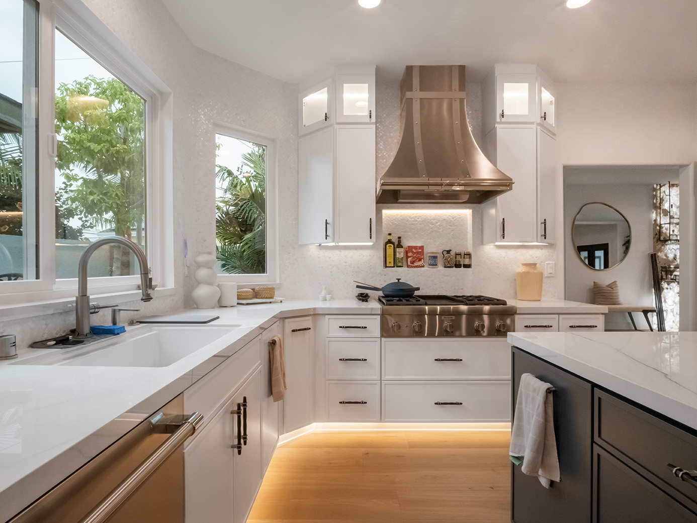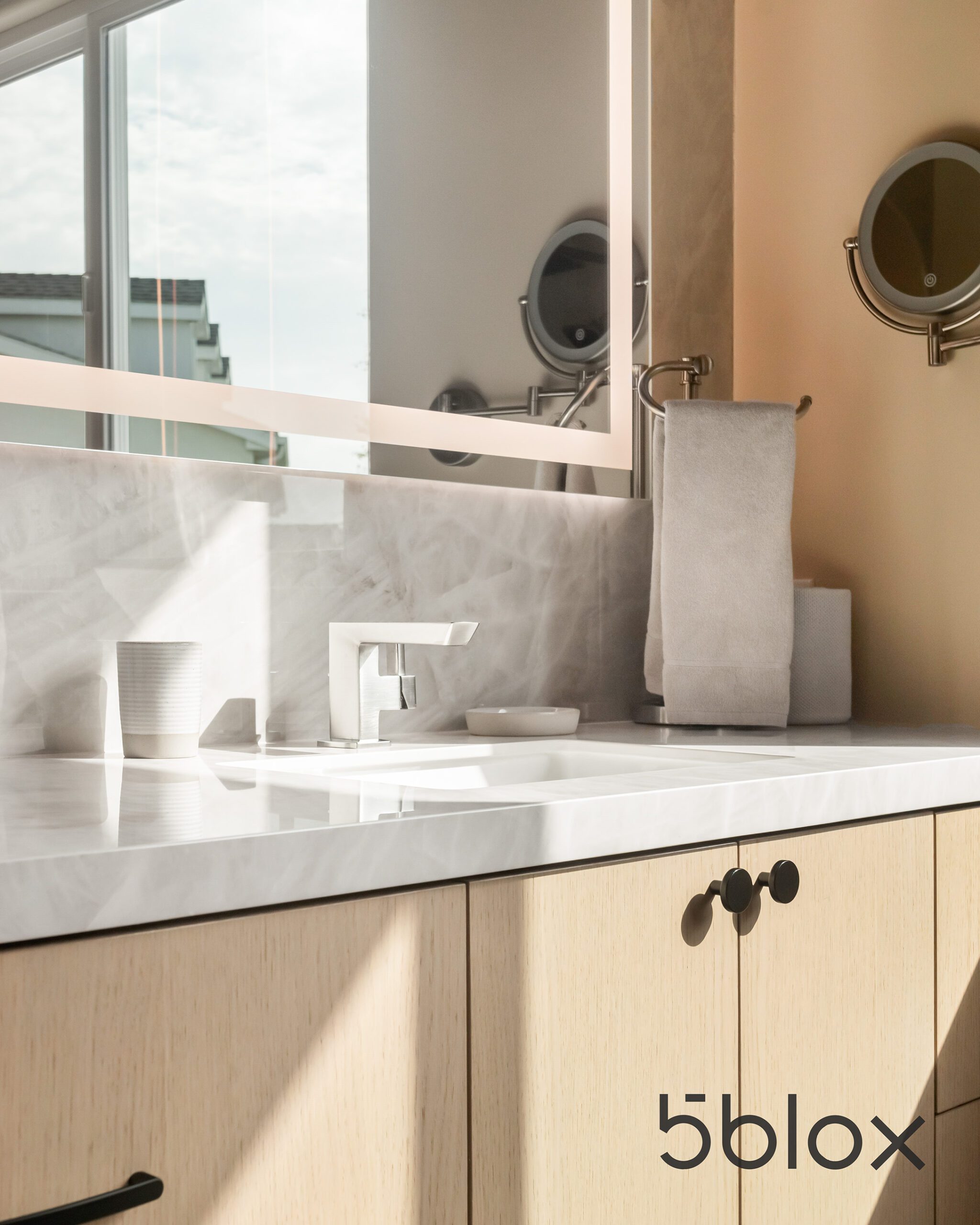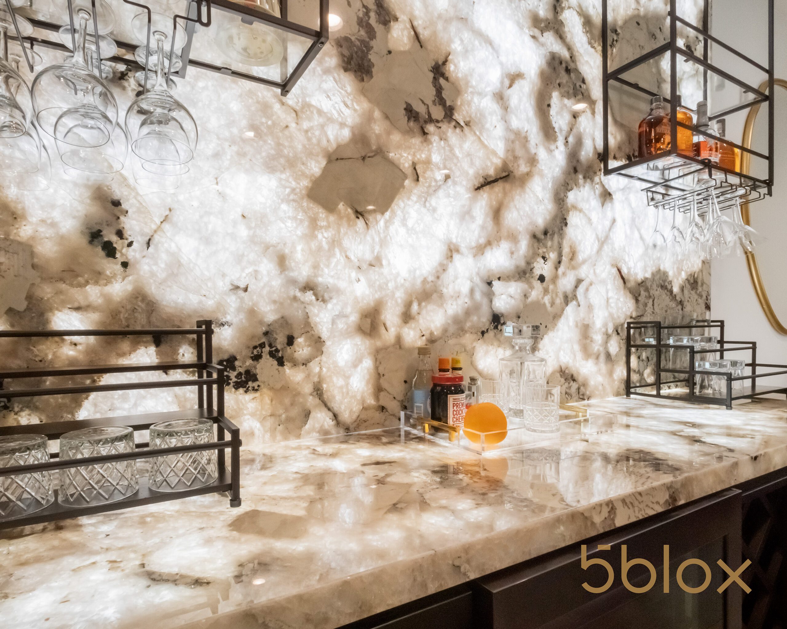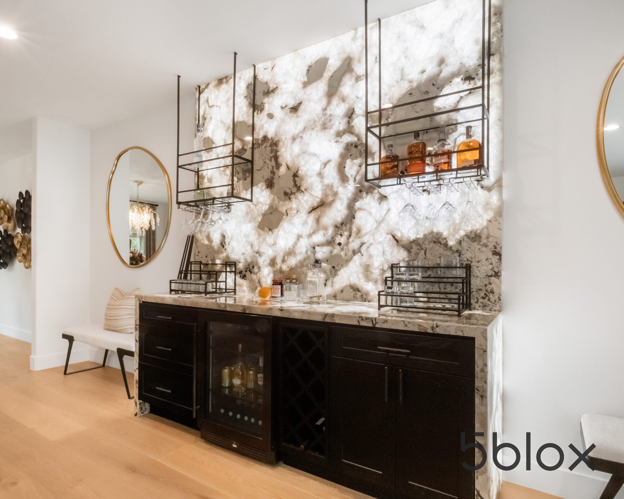 Designed with a cohesive, elevated feel to the entire home by blending natural materials with thoughtful functional upgrades. Across the kitchen, bar, fireplace, and primary bathroom, we introduced organic textures, like natural stone, warm wood tones, and soft, layered tiles to create spaces that feel modern, grounded, and intentionally connected. From the reworked kitchen layout and dramatic backlit Granite bar feature to the refined fireplace design and spa-inspired bathroom, each space enhances the home’s flow, warmth, and everyday comfort while maintaining a clean, contemporary aesthetic.